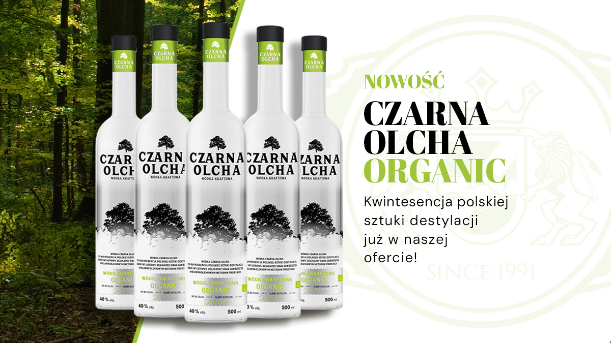 Wódka Czarna Olcha Organic to naturalny produkt wytwarzany z poszanowaniem środowiska. Albowiem, aby produkt mógł być uznany i oznaczony "Zielonym listkiem" certyfikatu EKO musi przejść specjalny proces certyfikacji. Do produkcji wódki Czarna Olcha Organic wykorzystano nasiona żyta pochodzące z rolnictwa ekologicznego, które wymaga specjalnego przygotowania i nadzoru. Do procesu siewu można wykorzystać jedynie certyfikowane nasiona, a w fazie wzrostu i uprawy nie stosuje się pestycydów i nawozów sztucznych. Podobnie jak przy produkcji win ekologicznych, gleba na której prowadzi się uprawę takich zbóż musi być odpowiednio przygotowana, przebadana i być oddzielona o tradycyjnych upraw. Dzięki tym wszystkim wymogom do produkcji destylatu żytniego trafiają najwyższej jakości ziarna żyta, które przekładają się na wyjątkową jakość i aromat wódki. Ekologiczny charakter produktu sprawia, iż wódka jest wyjątkowo delikatna, lekka i nienachalna.